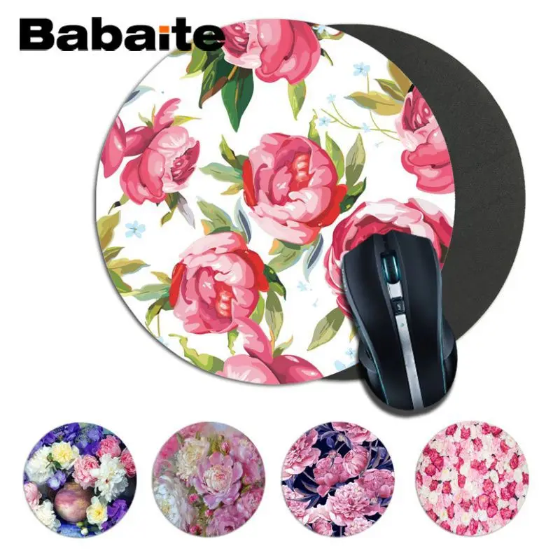 Babaite простой дизайн Белый Розовый пионы коврик для мыши игровой круглый коврик для мыши Размер для 220*220*2 мм круглый коврик для мыши коврик дл...