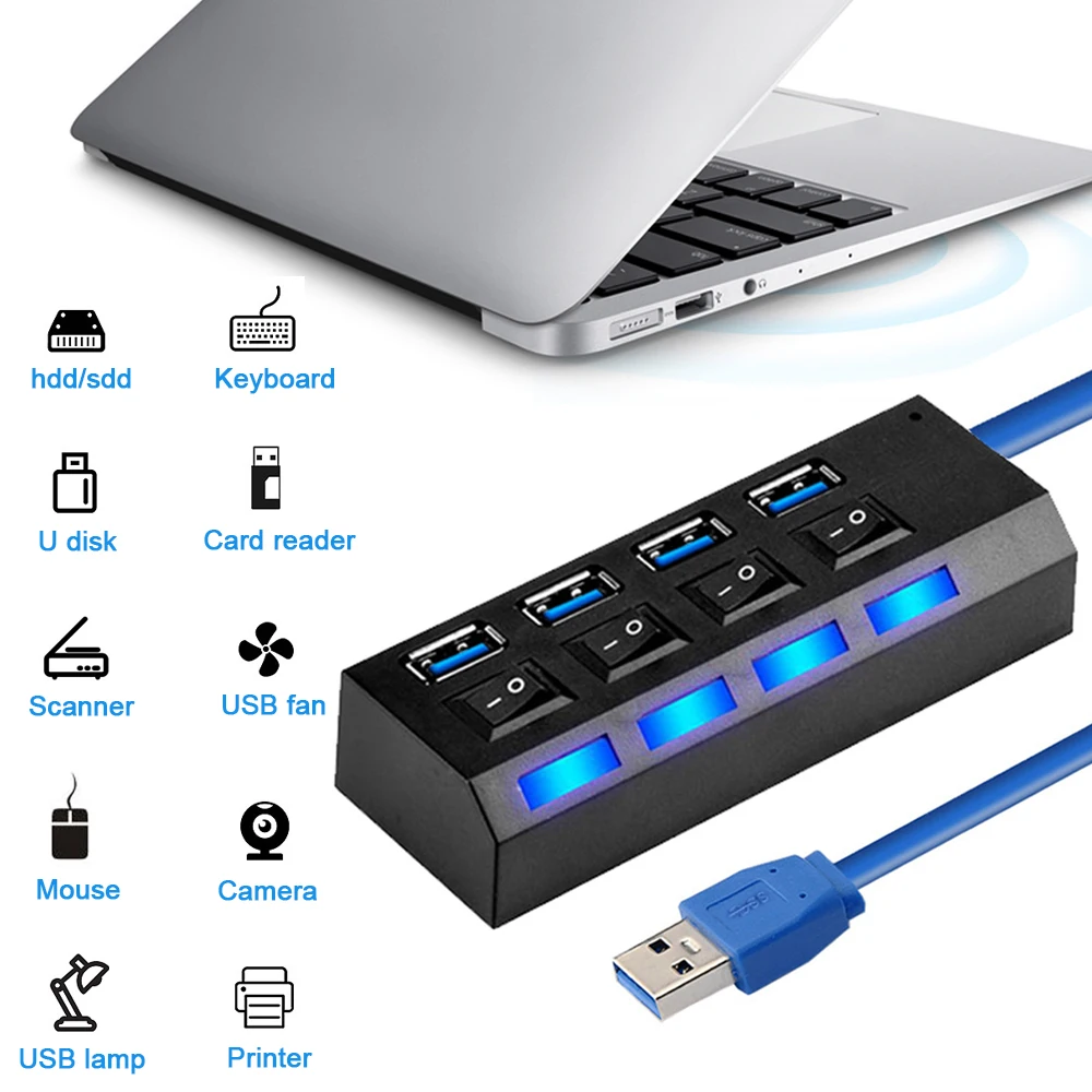 Usb-хаб 3,0 Мульти USB Порты и разъёмы 3/4/7 Порты 2,0 док-станция USB высокое Скорость хаб со на переключатель включения/выключения USB разветвитель дл...