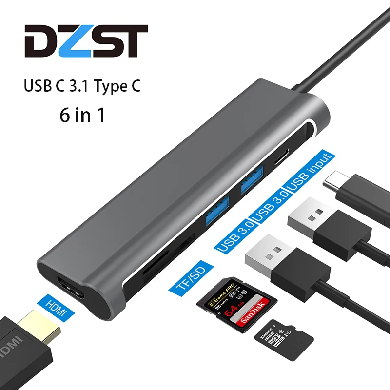 Usb-концентратор DZLST с Type-C к USB 3,0 HDMI кардридер PD Зарядка для MacBook Samsung Galaxy S9/S8 Huawei P20 Pro Thunderbolt 3 хаб