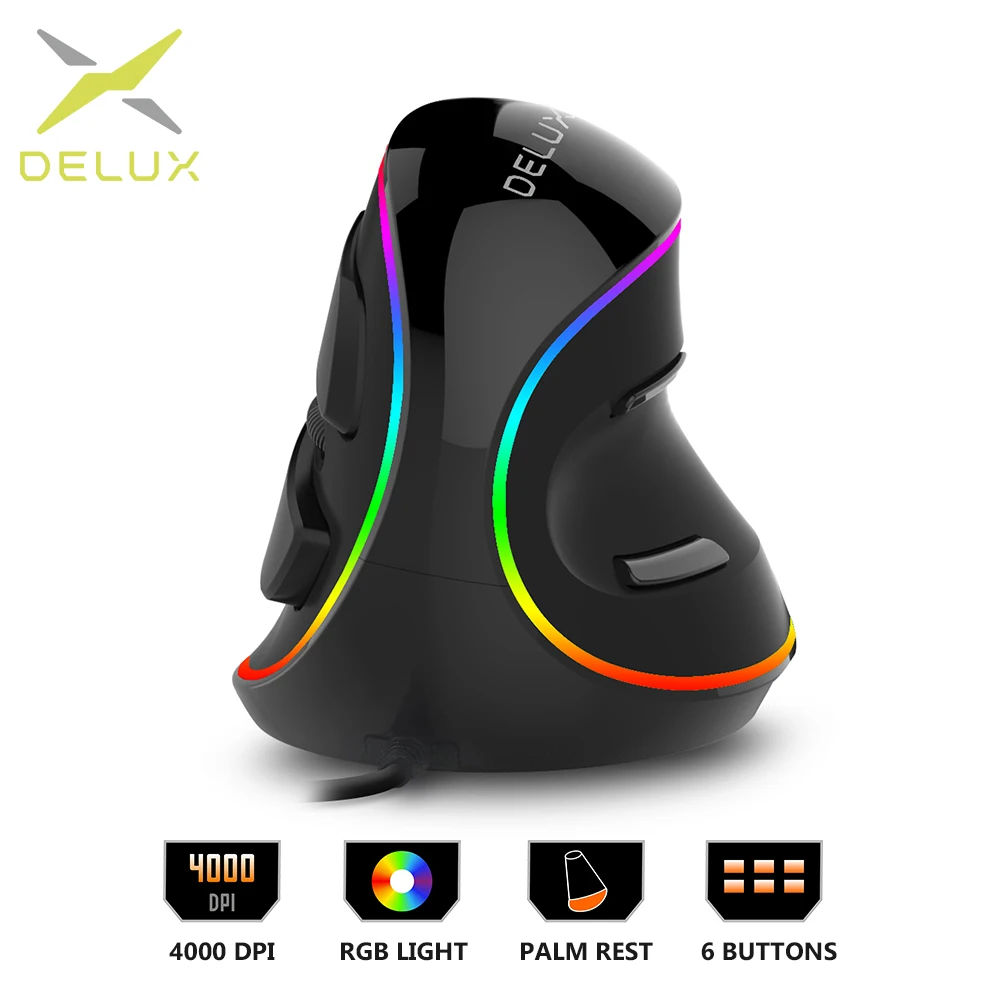 Delux M618Plus RGB эргономичный вертикальный мышь 6 пуговицы 4000 точек на дюйм Оптическая Компьютерная мышь со съемной Упор для рук портативных ПК