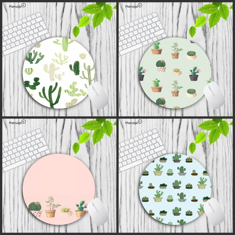 Mairuige круглый коврик для мыши милые кактусы в горшках настроить свой собственный образ хорошее качество противоскользящие настольные коври...