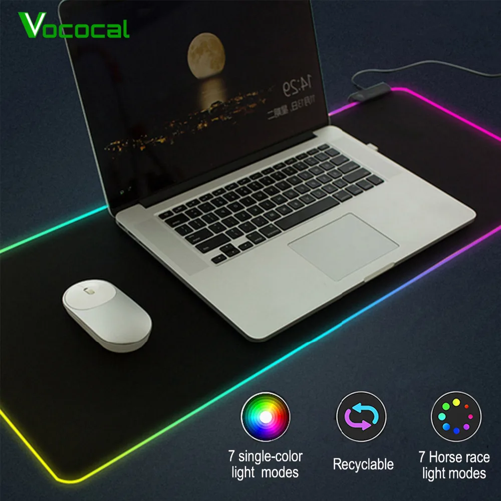 Vococal большой LED RGB коврик для мыши USB Проводное освещение игровой геймер Коврик для мыши Коврик для компьютера Overwatch Pubg alfombrilla raton