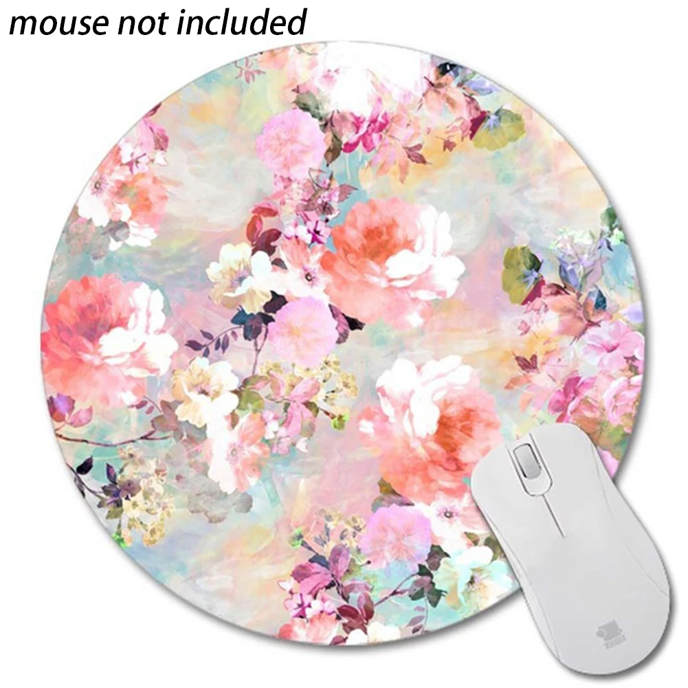 Мягкий тканевый прочный простой в очистке пользовательский дизайн коврик для мыши винтажная резиновая основа Романтические цветы круглой формы гладкие Нескользящие принадлежности