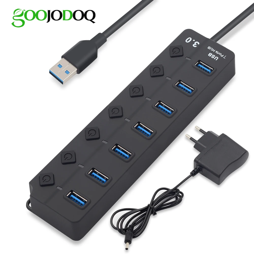 USB 3,0 Hub 4/7 Порты и разъёмы супер Скорость USB 3 данных концентратор с индивидуальным Мощность переключатели и EU/US Мощность адаптер для ноутбука...