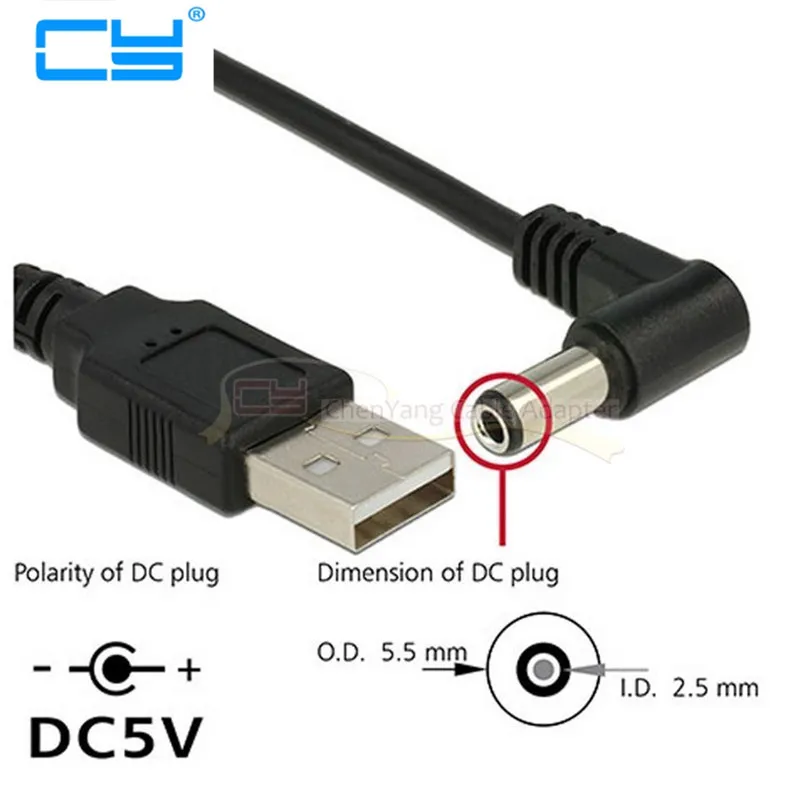 USB 2.0 Тип мужчины к прямым под углом 90 градусов 5.5x2.5 мм DC 5 В Мощность зажигания ствола разъем зарядки кабель 80 см