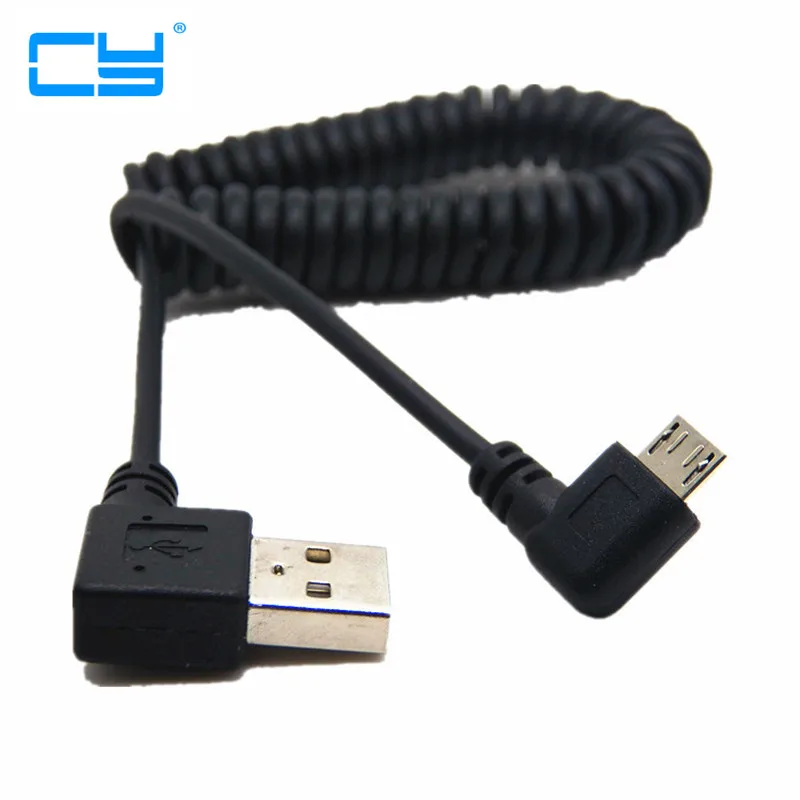 90 градусов USB Micro USB кабель для зарядки USB к Micro USB пружинный кабель для синхронизации данных Шнур для зарядного устройства спиральный кабель B левый для телефонов samsung