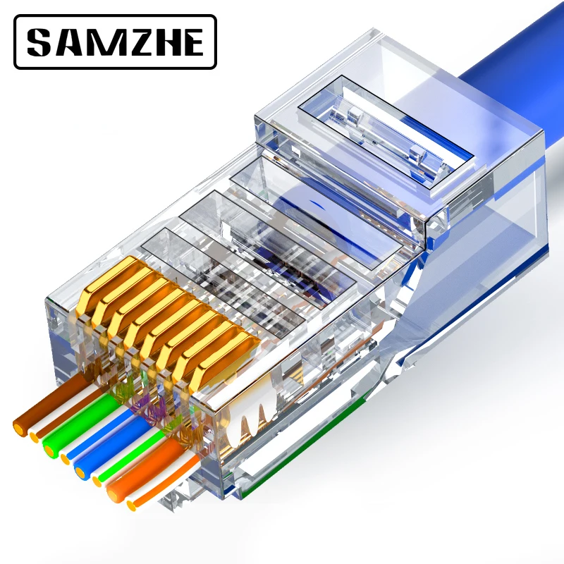 SAMZHE RJ45 экранированный разъем cat5e Cat6 Сетевой разъем rj45 разъем Вилки 23AWG Кристалл головка 8 Линейный Разъем 10 шт./лот