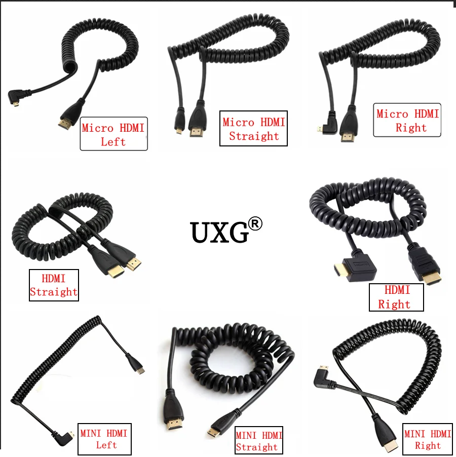Высокая Скорость Mini HDMI левый угол к HDMI кабель позолоченный весна Curl HDMI V1.4 3D Premium HDMI кабель для sony видеокамер Canon