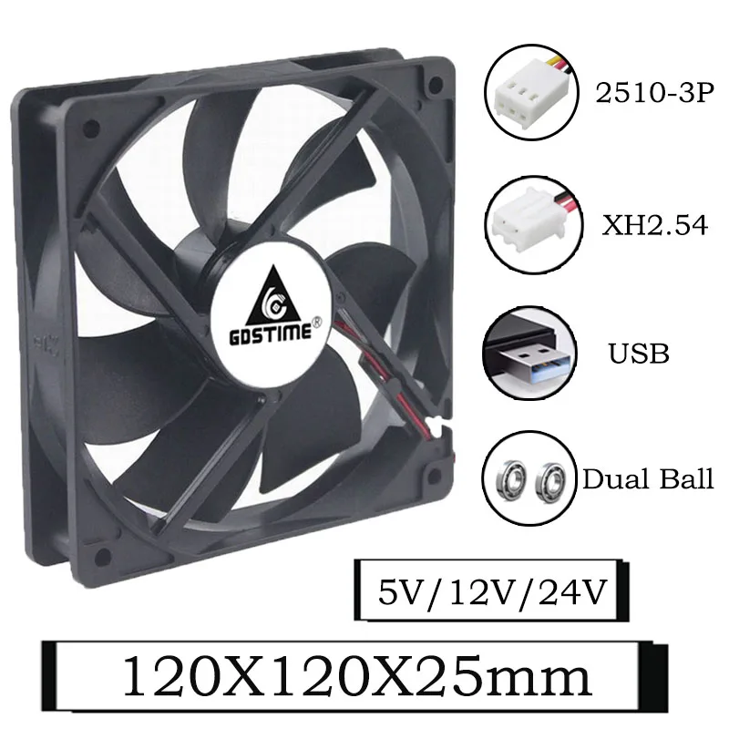 1 шт. gdstime 12 В шариковый подшипник DC Бесщеточный вентилятор охлаждения 120 мм x 25 мм 2Pin 0.3A 12 см корпус Cooler 120 мм * 120 мм * 25 мм 12 вольт