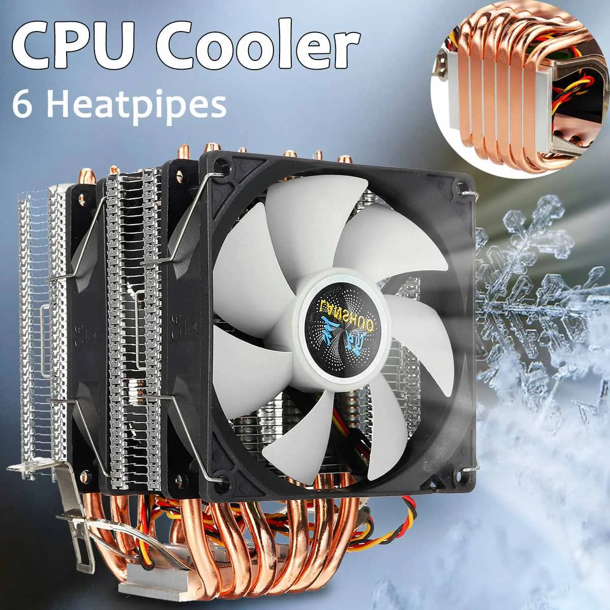 6 тепловых трубок Процессор кулер двухсторонний Вентилятор Cooler Тихий охлаждающий вентилятор радиатора для LGA 1150/1151/1155/1156/1366/775 для AMD