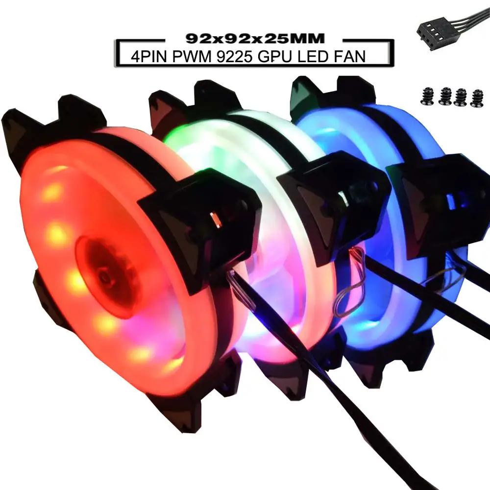 Светодиодный вентилятор ШИМ 90 мм 9225, 4 pin, 92 мм, тихий вентилятор для корпуса компьютера 9 см, вентилятор охлаждения процессора, тихий вентилятор охлаждения для ПК, постоянный ток 12 В, регулировка скорости вентилятора