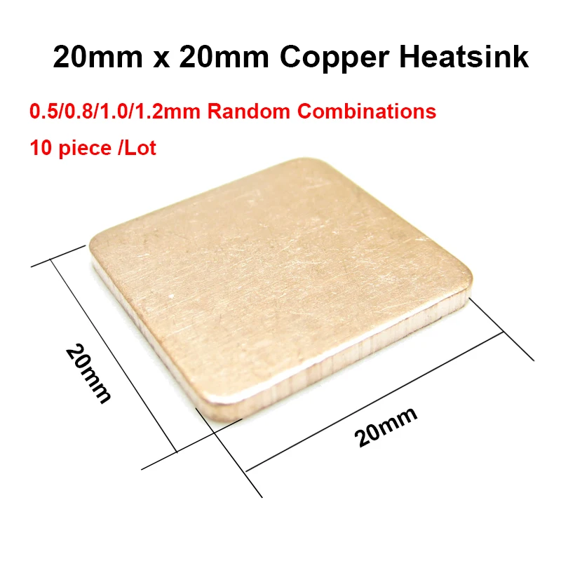 10 шт. 20x20x0.5/0.8/1.0/1.2 мм случайный Мотокостюмы DIY Медь радиатор тепловая площадку, ноутбук Процессор vga чип Оперативная память охладитель
