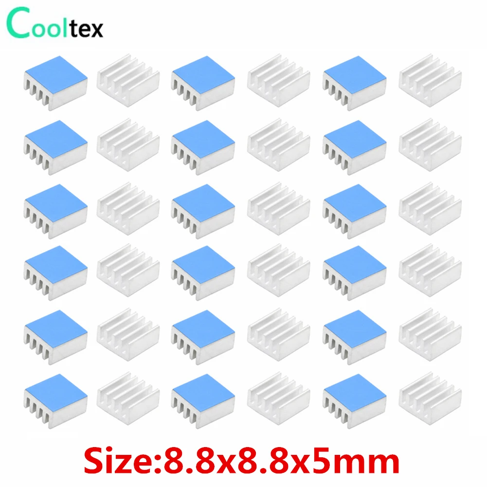 50 шт. 8,8x8,8 мм x 5 мм алюминий радиатора охлаждения кулер для электронный чип IC оперативная светодио дный память LED с Теплопроводящая лента