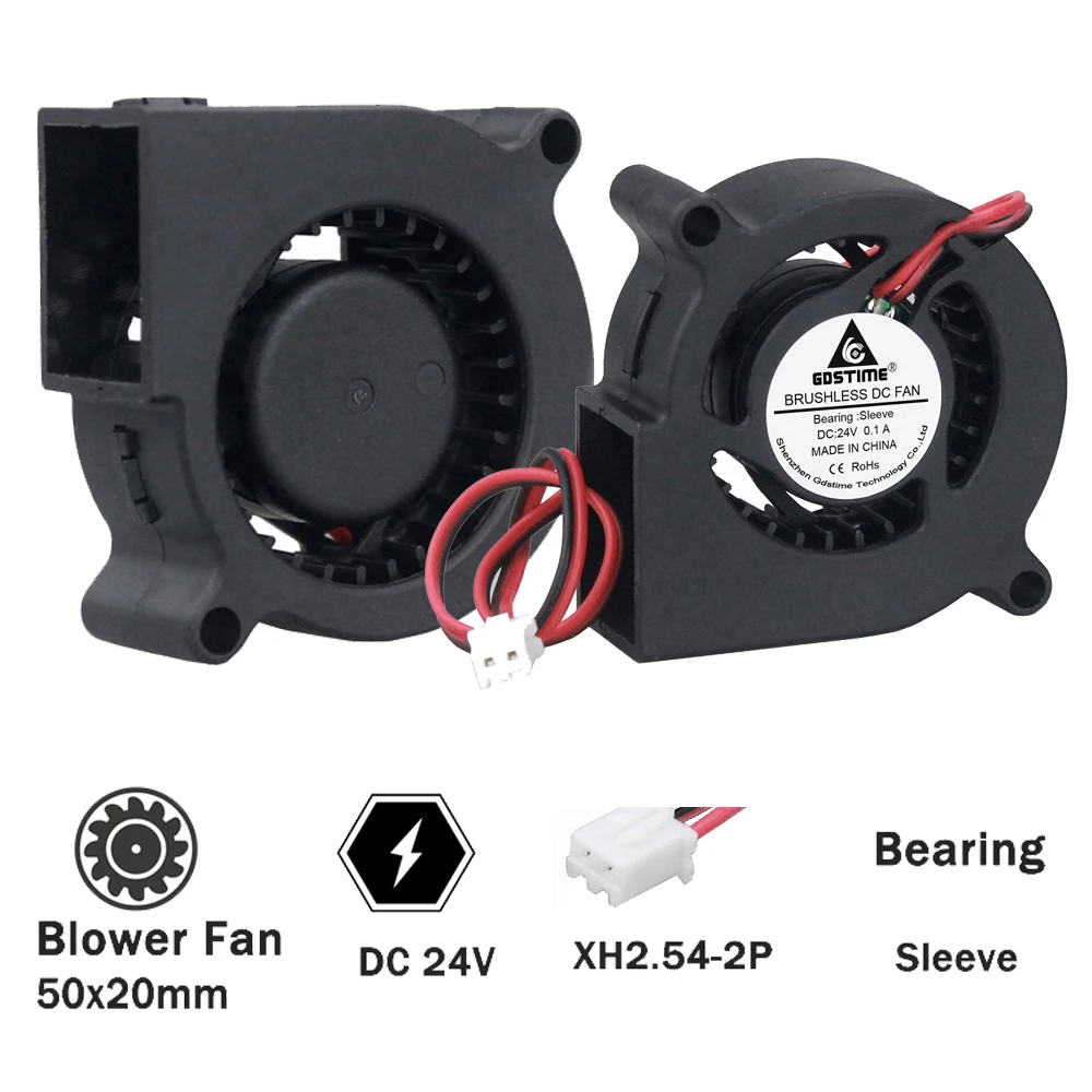 Вентилятор Gdstime, центробежный вентилятор постоянного тока 24 В 50 мм 50х50х20 мм 5000 об/мин, 24 В 5020, 5 см