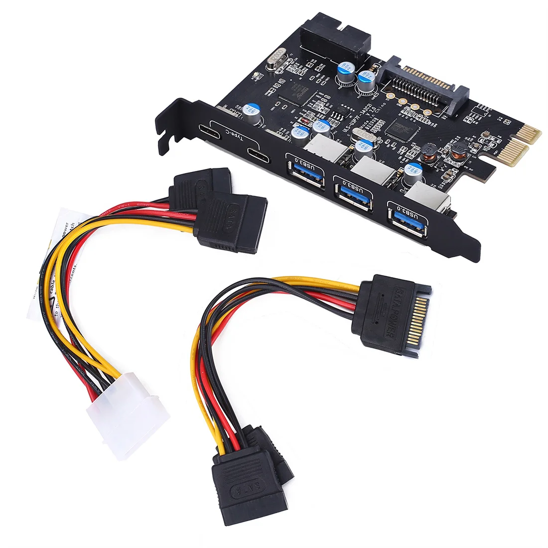 Добавить на карты USB 3,0 PCI-E type C Плата расширения PCI Express адаптер контроллера 3x UBS3.0 + 2x USB 3,1 + 4Pin питание 15Pin SATA