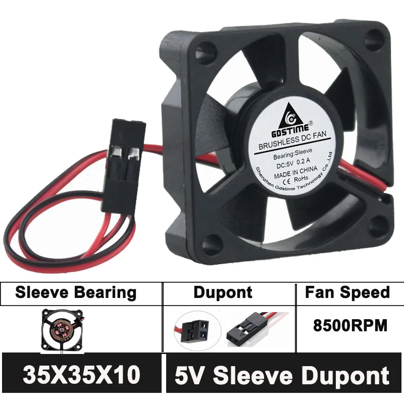 Вентилятор охлаждения Gdstime, 2 шт., 35*35x10 мм, осевой, 5 В, Dupont, 2Pin, 35 мм