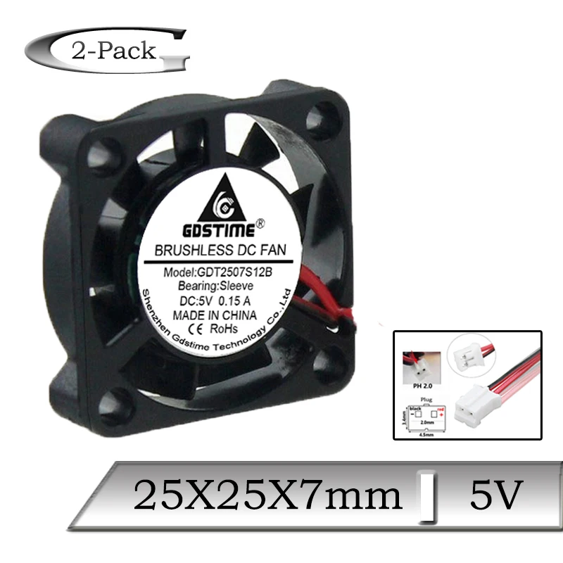 2 шт. Gdstime 5V 2507 с фокусным расстоянием 25 мм Мини PH2.0 Бесщеточный Охлаждающий вентилятор постоянного тока 25x25x7 мм 2,5 см компьютер Процессор 3D принтер кулер