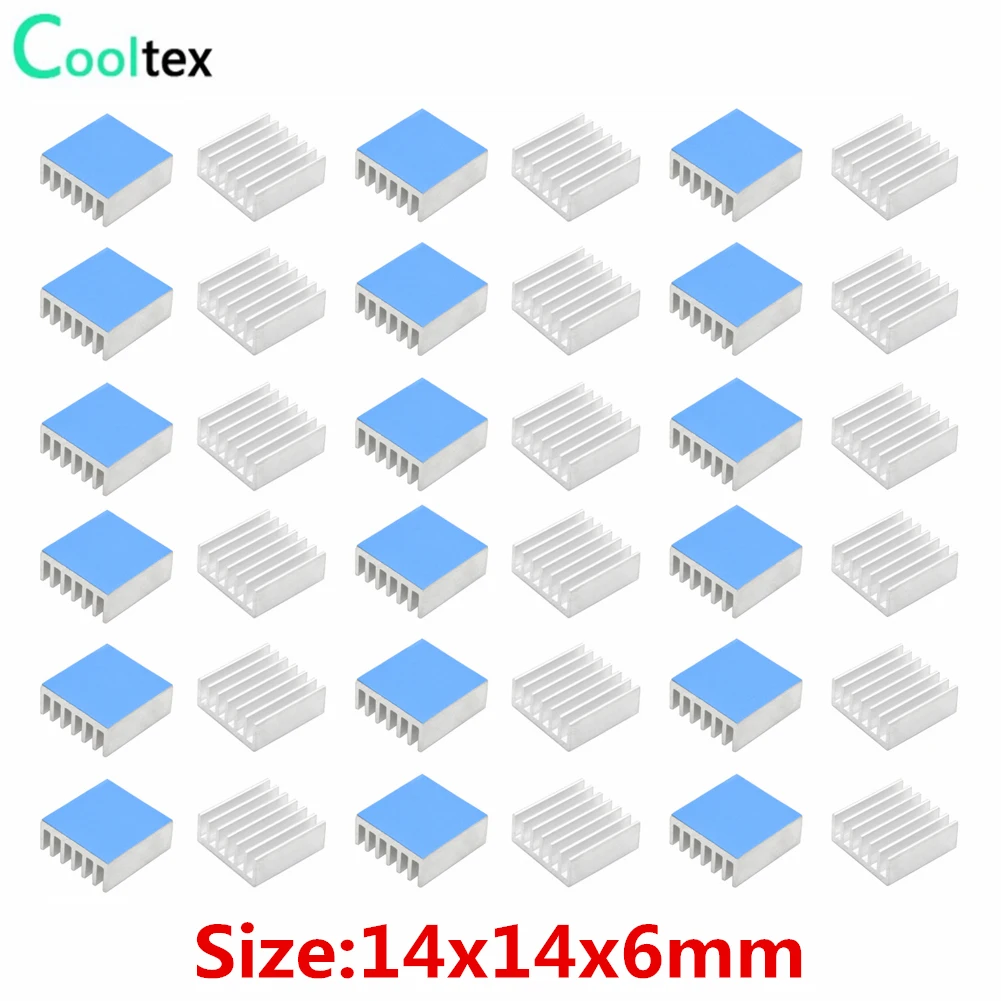 Мм 50 шт. 14x14x6 мм алюминий радиатора радиатор охлаждения для электронный чип IC с термальность проводящий Двусторонняя клейкие ленты