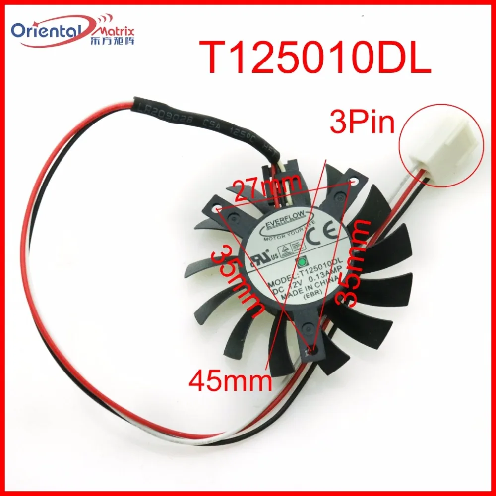Бесплатная доставка T125010DL 12 В 0.13A 45 мм Графика карты кулер вентилятор охлаждения