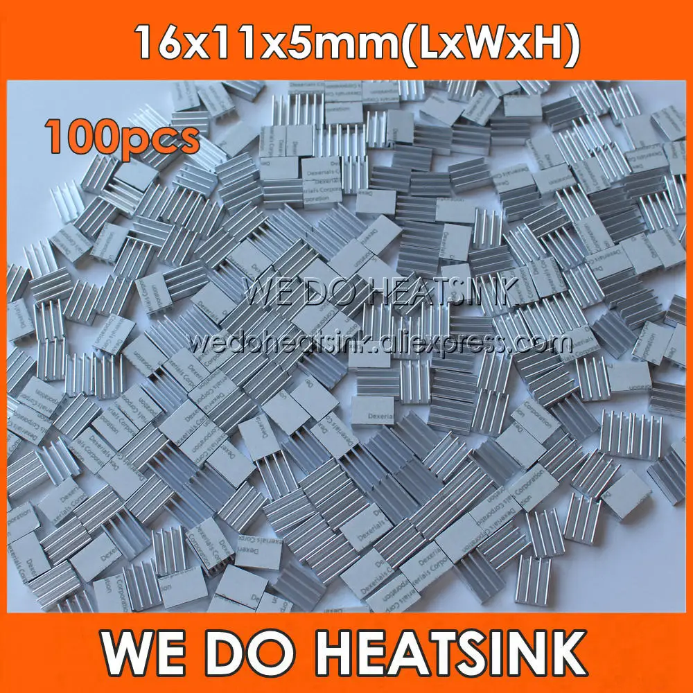 Бесплатная доставка 100 шт./лот 16*11*5 мм., штампованный Процессор алюминиевый радиатор с Теплопроводящая лента радиатора Мощность поклонники ...