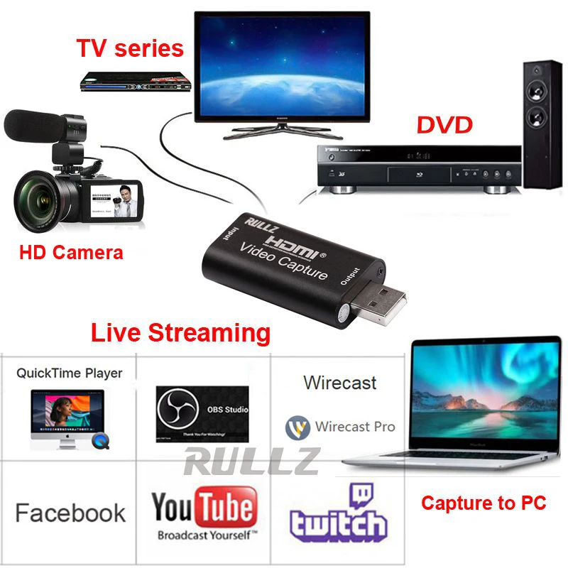 Rullz Мини карта видеозахвата USB 2,0 HDMI видео захват телефон игра HD камера захват запись коробка + PC Прямая трансляция