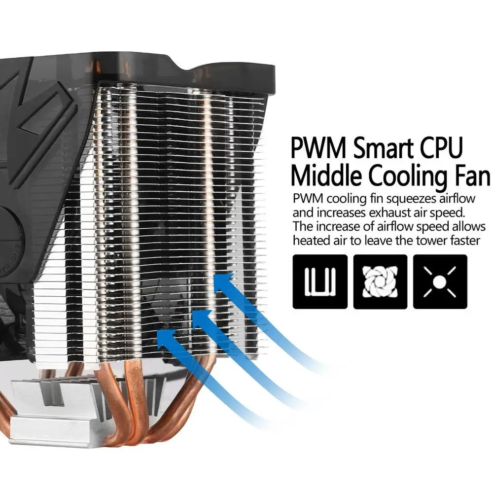 Кулер для процессора Ультра тихий 20 дБ (А) с 90 мм вентилятором четыре медные тепловые трубки четыре провода для ПК компьютер длительный срок службы компактный