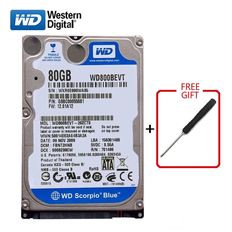 Бренд WD 80Gb HDD 2,5 "SATA Внутренний жесткий диск 80G HD Жесткий диск 1,5-3 ГБ/сек. 5400-7200 об/мин синий Жесткий диск для ноутбука Бесплатная доставка