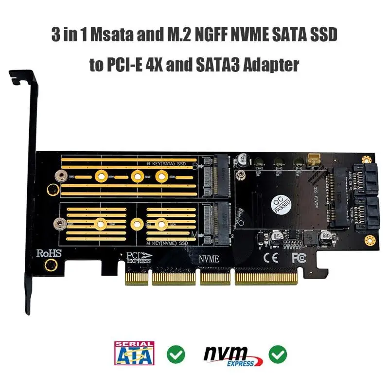 ALLOYSEED 3 в 1 Msata PCIE M.2 NGFF NVME SATA SSD для PCI-E 4X SATA3 Apapter карты расширения компьютера для 2280 2260 2242 2230 мм