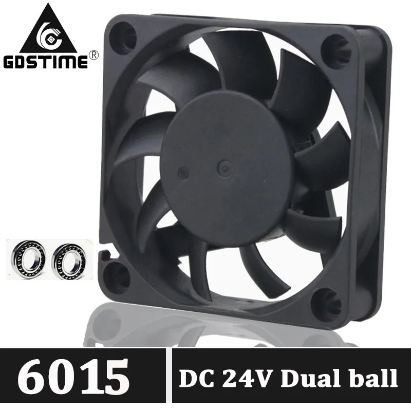 2 шт. Gdstime Бесщеточный вентилятор охлаждения постоянного тока 24 В 60 мм 60x60x15 мм 6015 6 см шариковый подшипник 2Pin для компьютера ПК чехол для процессора охлаждения