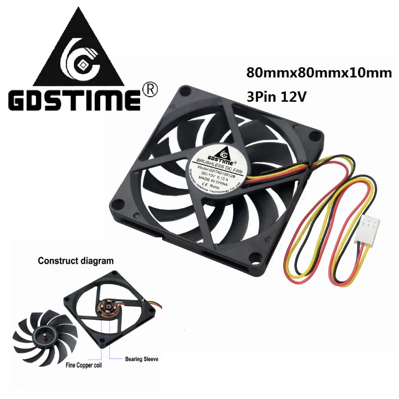 5 шт. Gdstime 80x80x10 мм 3Pin разъем DC 12 В бесщеточный PC процессор вентилятор охлаждения 80 мм x 10 мм 3 дюймов 8 см Цвет: черный, синий вентилятор двигател...