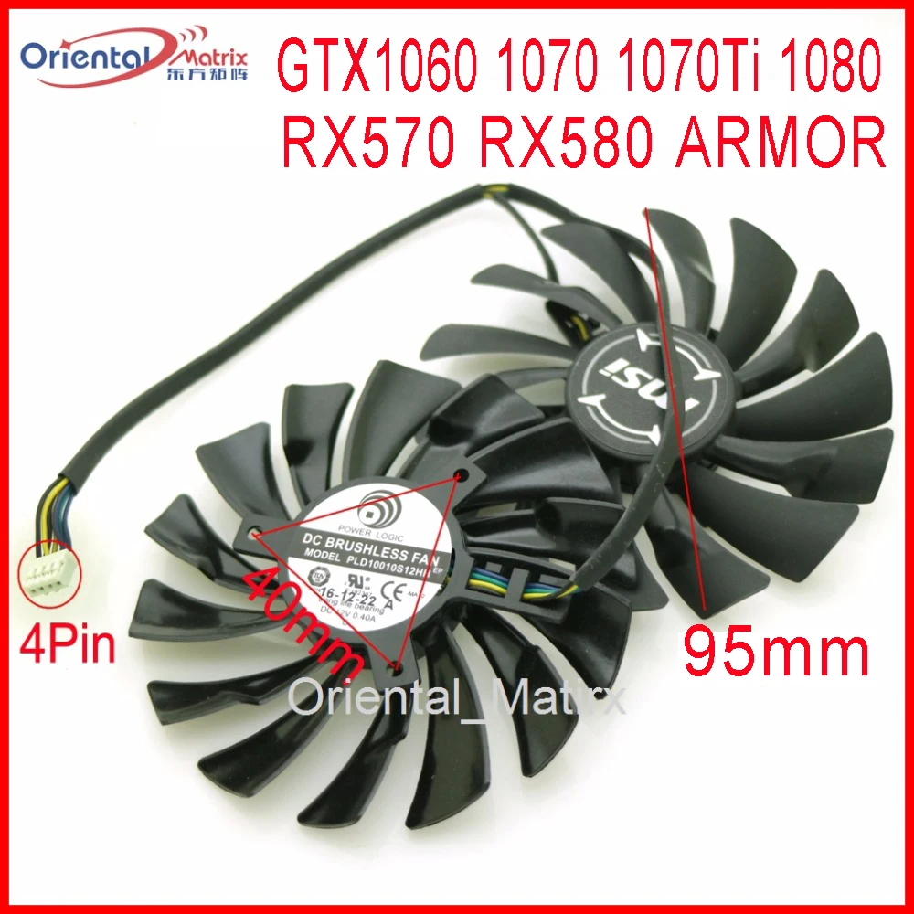 Бесплатная доставка 2 шт./лот PLD10010S12HH DC12V 0.40A 95 мм 4Pin для MSI GTX1060 1070 1070Ti 1080 RX570 RX580 Броня Графика карты вентилятор