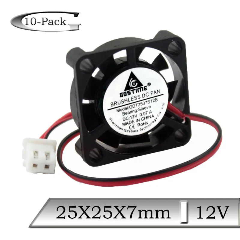 10 шт. Gdstime 12 В 25x25x7 мм 25 мм 9 лезвий мини 2Pin 3D принтер Вентилятор охлаждения 2507 2,5 см бесщеточный DC вытяжной охладитель радиатора
