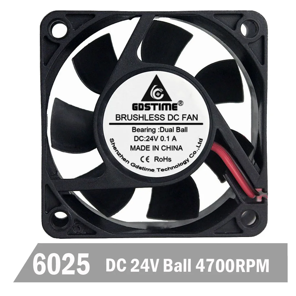2 шт. Gdstime 24 В 4700 об/мин шариковый подшипник 60*60*25 мм DC 24 вольт 2-контактный кулер безщеточный Корпус Для ЦПУ охлаждающий вентилятор 6025
