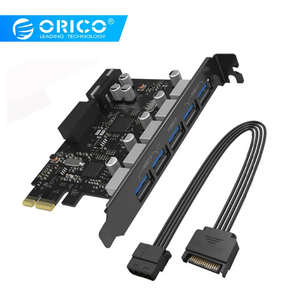 ORICO PCI-E Expansion Post Card 5 портов USB 3,0 карта с разъемом PCI Express 5 Гбит/с Совместимость для Windows XP Linux с 4 pin шнур питания