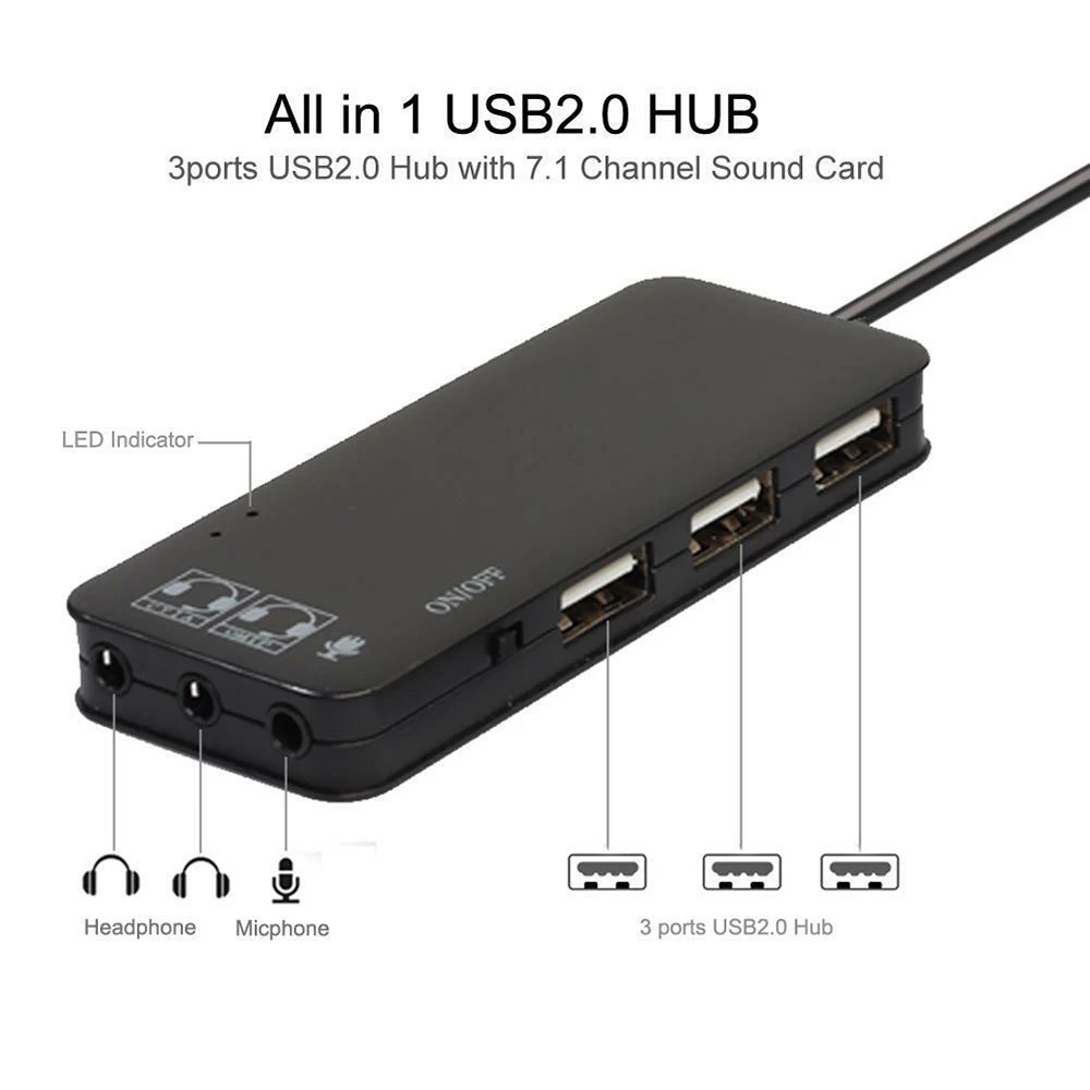 Мульти USB Звуковой адаптер микрофон 7,1 канал звуковые карты интерфейс сплиттер USB концентратор 2,0 3 порта кардридер для Macbook Pro