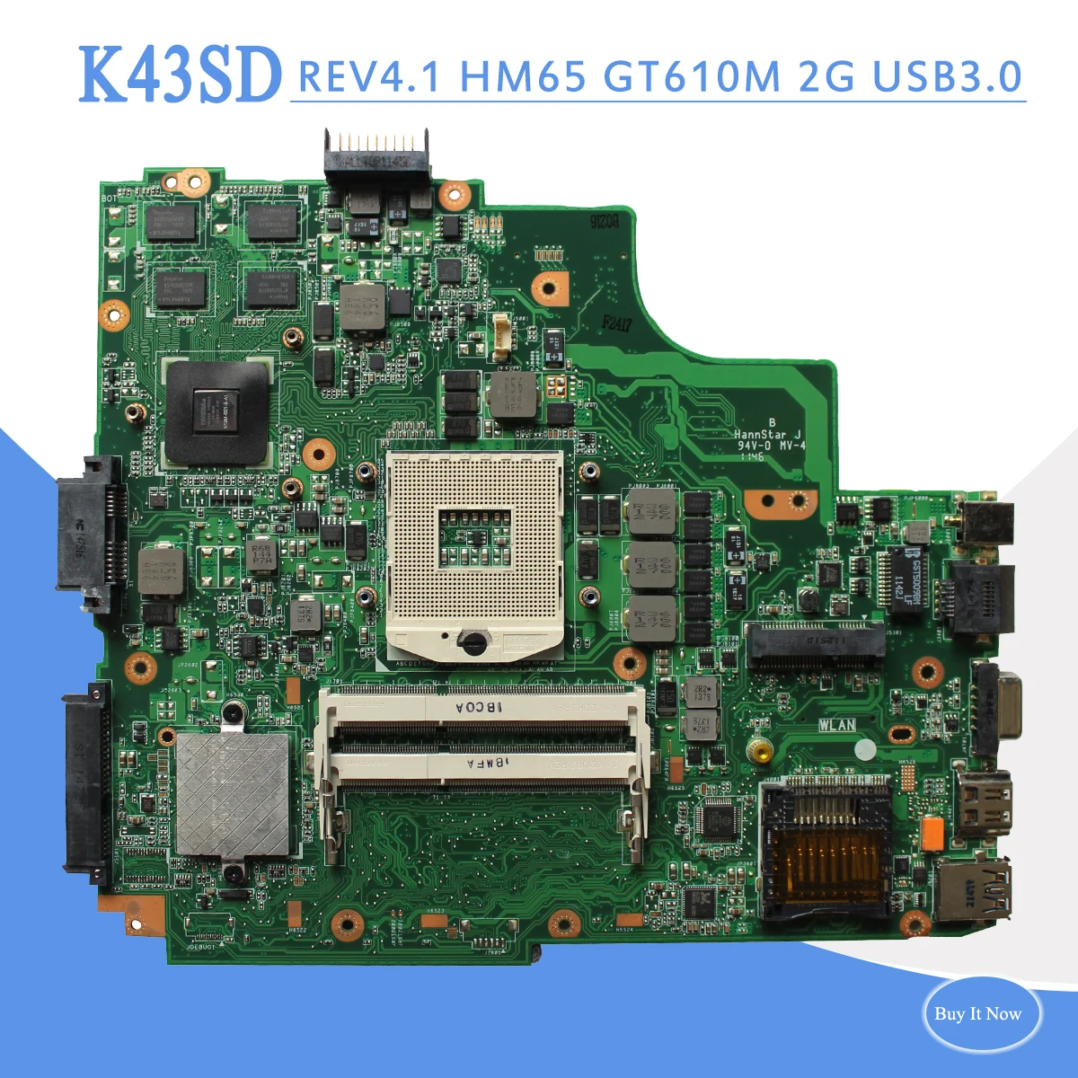 Материнская плата K43SD REV4.1 ASUS K43SD A43S K43S материнская плата для ноутбука GT610M 2G REV: 4,1 DDR3 USB3.0 материнская плата полностью проверена