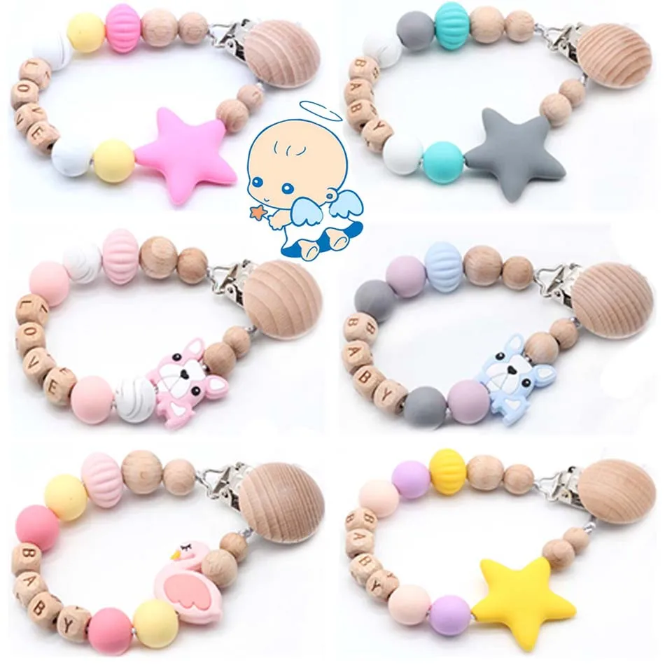 Персональное имя силикона и дерева зажимы для соски-пустышки, соски цепи для соски, Baby Shower подарок, дети прорезывания зубов игрушка