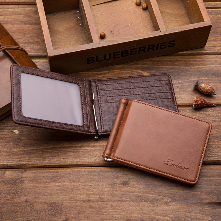 Новинка, ультра тонкие Зажимы для денег, мужской короткий кошелек, однотонный чехол для кредитных карт, повседневный мужской кошелек из иск...