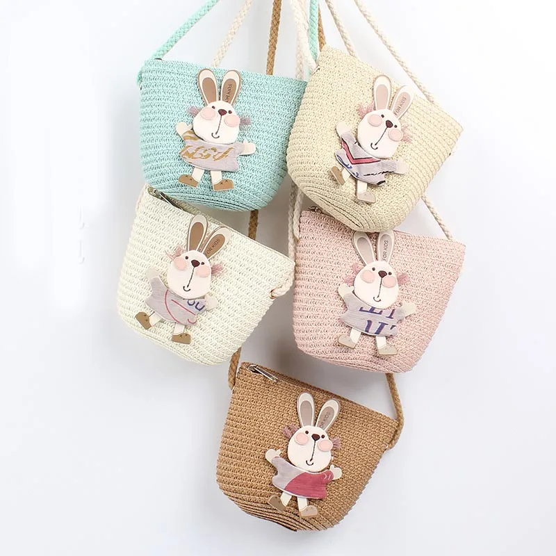 Модное детское нижнее белье для девочек на плечо сумка с апликацией кролика Животные соломенная мессенджер сумка Детские ключи, монеты кош...