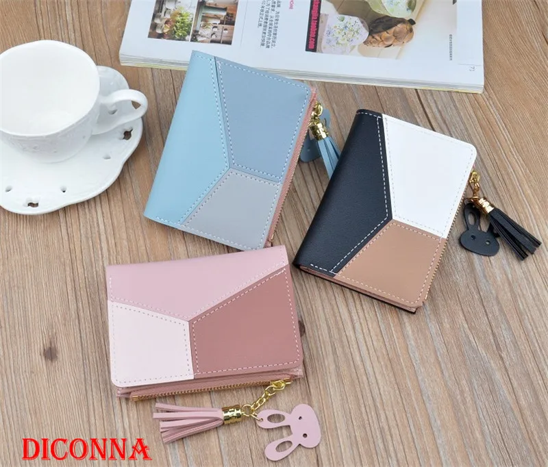 Женский кожаный маленький короткий кошелек для монет на молнии, мини-кошелек на кнопках, корейский маленький кошелек для кредитных карт, ко...