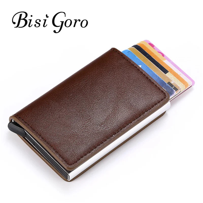 BISI GORO Умный кошелек алюминиевая коробка держатель для кредитных карт для мужчин и женский тонкий кошелек RFID держатель чехол для карт бумажн...