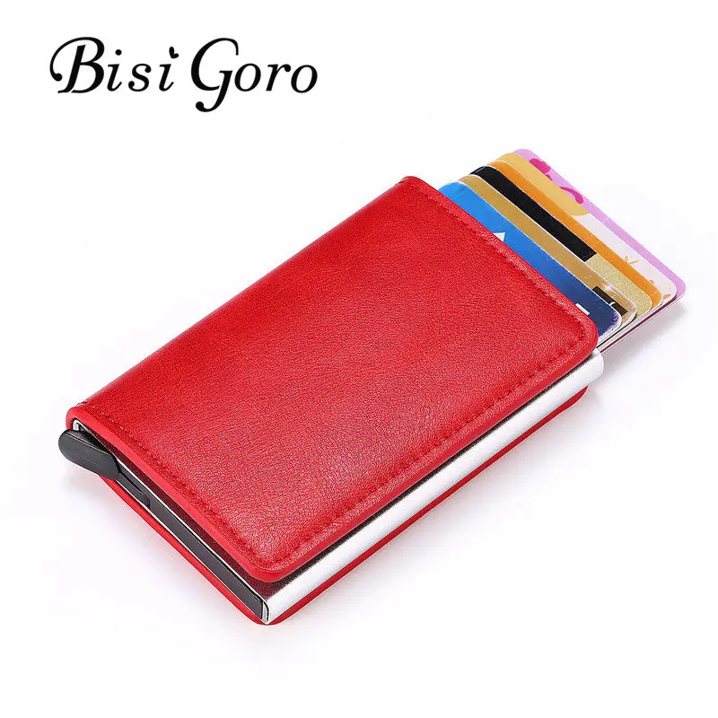 BISI GORO 2019 Умный кошелек Бизнес держатель для карт с застежкой Rfid Алюминиевый металлический кредитный бизнес мини карточный Кошелек падение ...