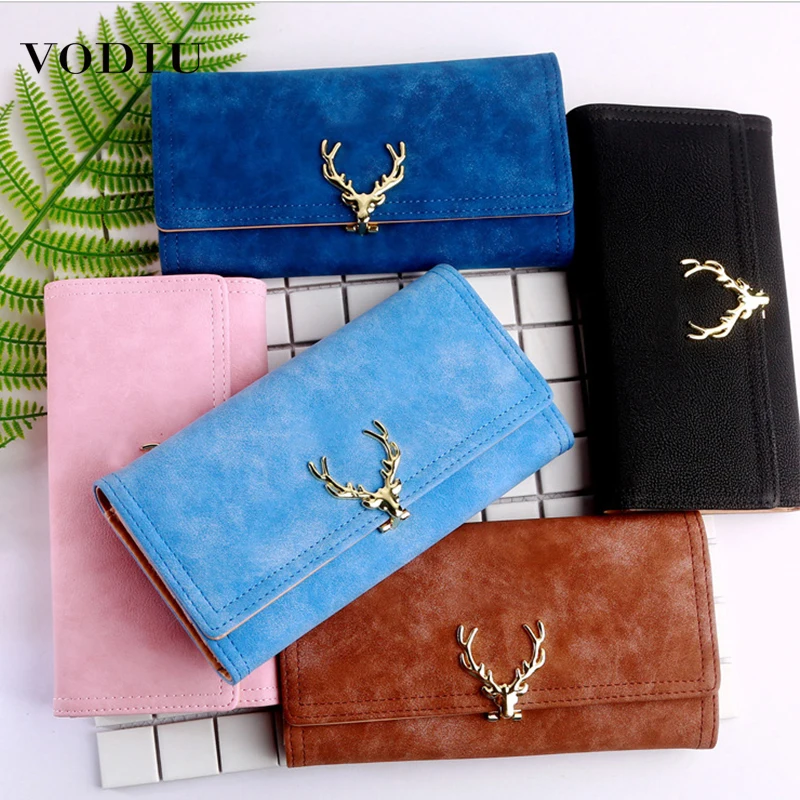 2019 мультяшный кожаный женский кошелек с карманом, женский клатч, кошелек, Женский Короткий держатель для карт, милый кошелек с оленем для де...