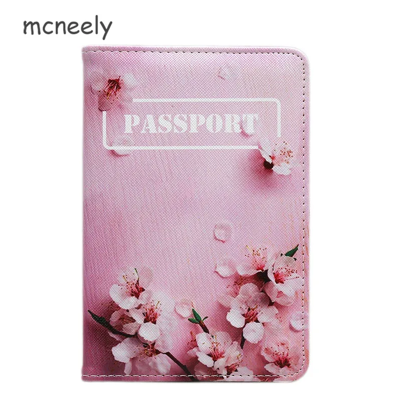 Mcneely Peach blossom Женская Обложка для паспорта розовый кожаный обложка для паспорта с держатель для карт девушка чехол порте Carte
