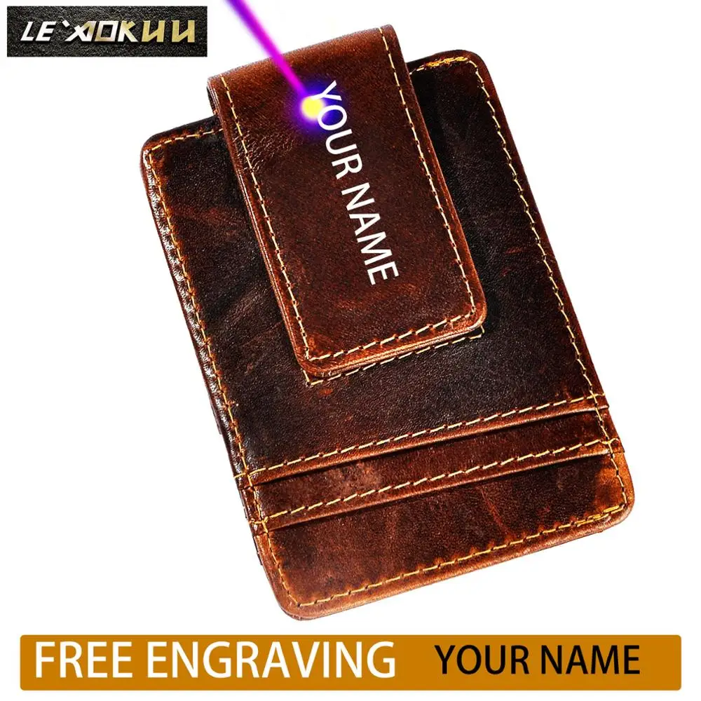 Мужской качество кожи модельер путешествия тонкий кошелек передний карман магнитный зажим для денег Mini Card Case кошелек для Для мужчин 1058c