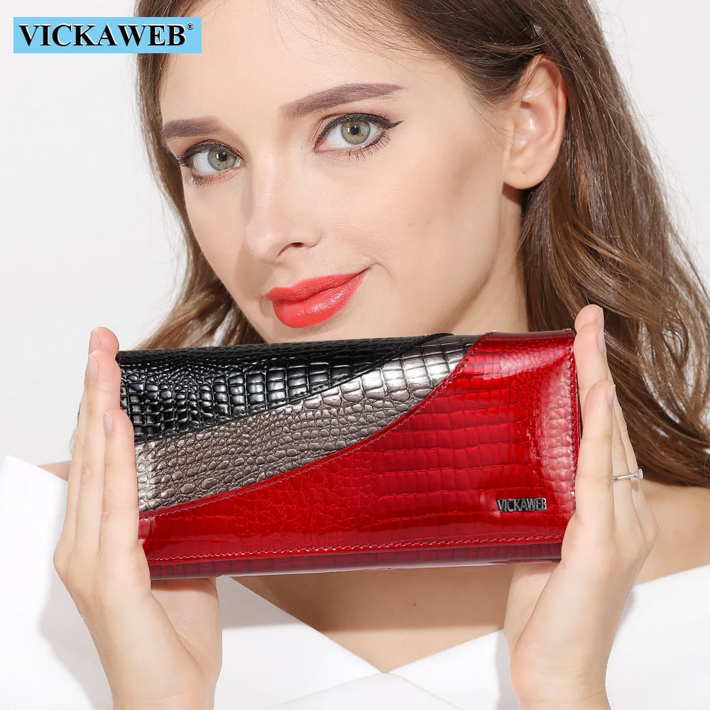 Vickaweb кошелек женский лоскутное длинным Для женщин кошельки из натуральной кожи кошельки женские Винтаж Hasp кошелек из кожи аллигатора Станд...