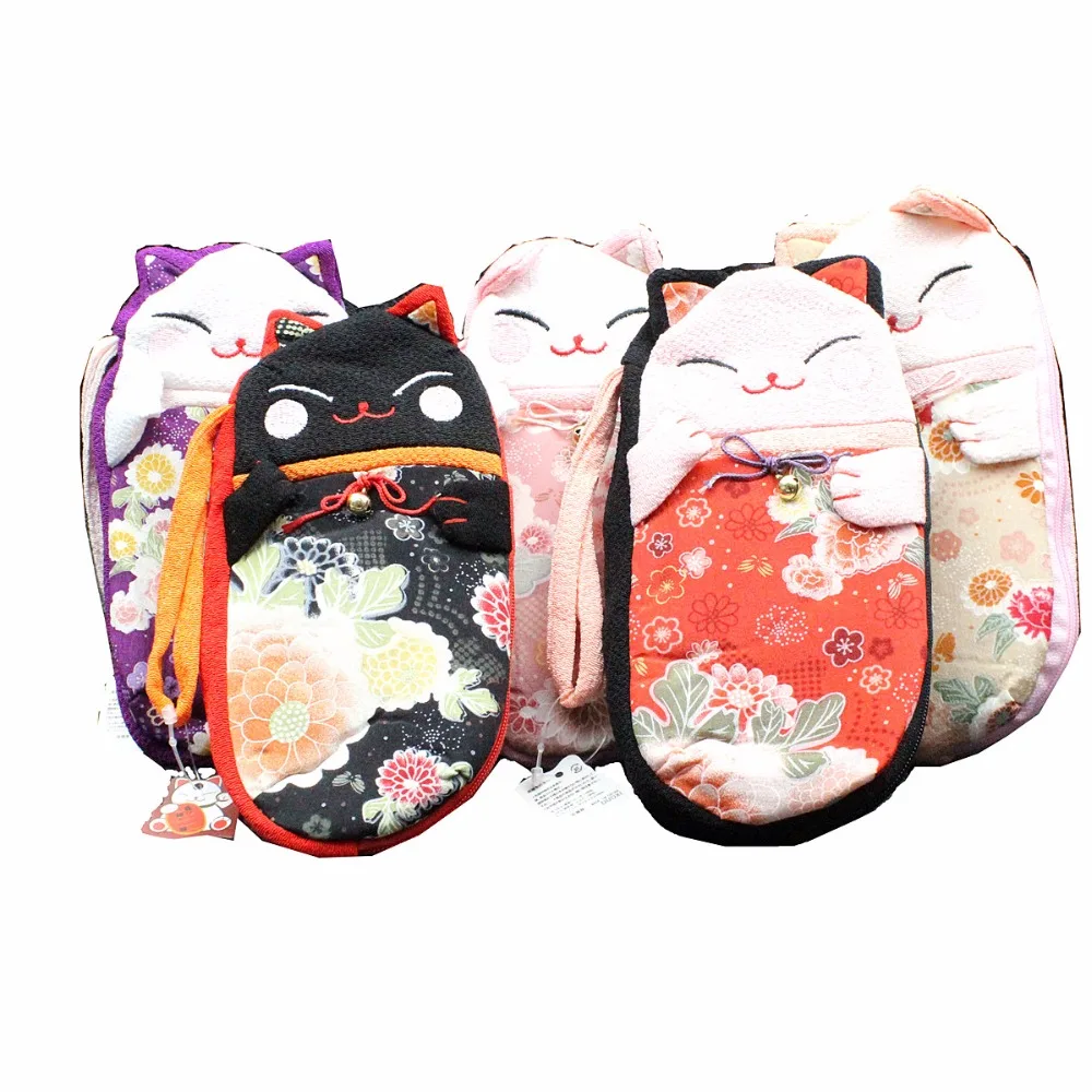 M295 Симпатичные Lucky Cat разнообразные изображения молния шелковые ручки нулевой бумажник ткань монета кошельки Сумки-холсты ручной работы Дл...