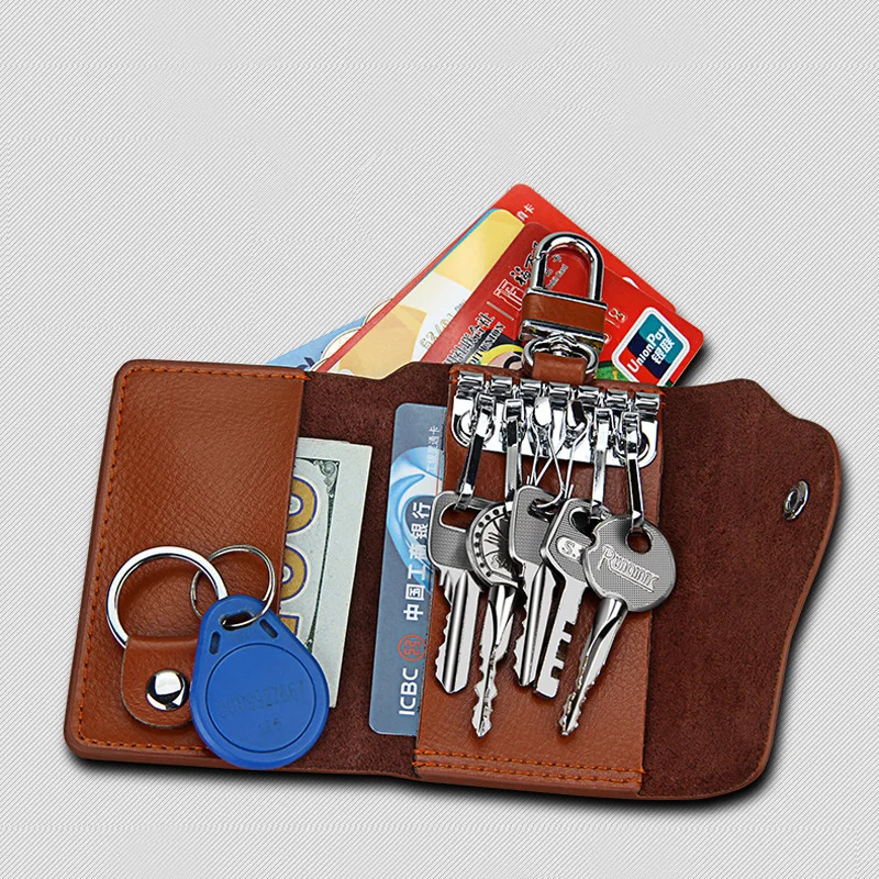 Кожаные мужские кошельки для ключей, короткий квадратный держатель для удостоверения личности из воловьей кожи, многофункциональная автомобильная цепочка для ключей на молнии, кошелек для домохозяек, оптовая продажа