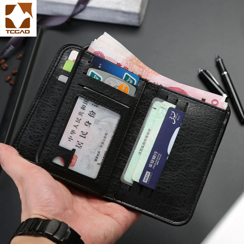 TCGAD новый бренд масло воск кожаный мужской кошелек модный короткий двойной кошелек Повседневный однотонный мужской кошелек с карманом для ...