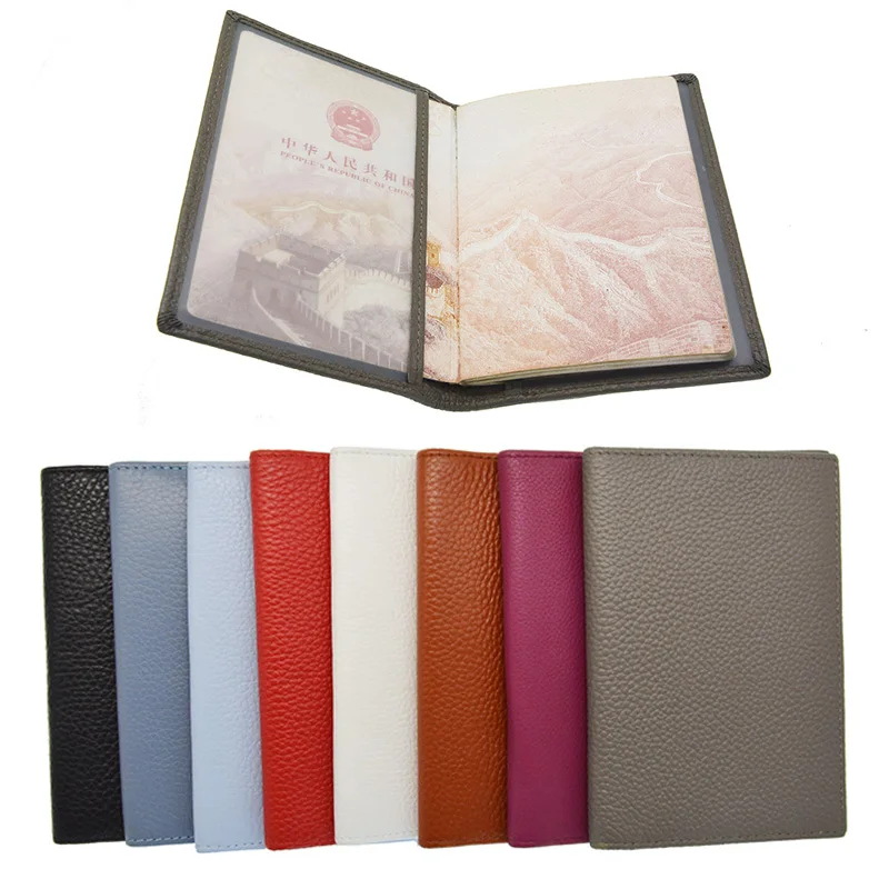 Чехол для паспорта из натуральной кожи с зернистой текстурой личи, мягкий однотонный пустой чехол ярких цветов для паспорта, костюм для пол...